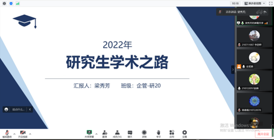 2022年10月28日晚,永利集团通过腾讯会议线上举行了研究生学术文化节之“学长论坛”分享会第一场,公司2022年国家奖学金获得者梁秀芳同学受邀为全体研究生分享自己的科研经验及学术成果。